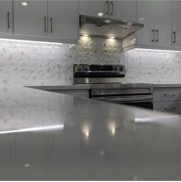 A backsplash is a vertical extension to a counter—typically a kitchen or a bathroom counter. A backsplash can extend a few inches high or it can go as high as the ceiling. The purpose of a backsplash is primarily functional. It protects the wall behind the sink against water damage from inadvertent splashing and enhances the over all look of your home